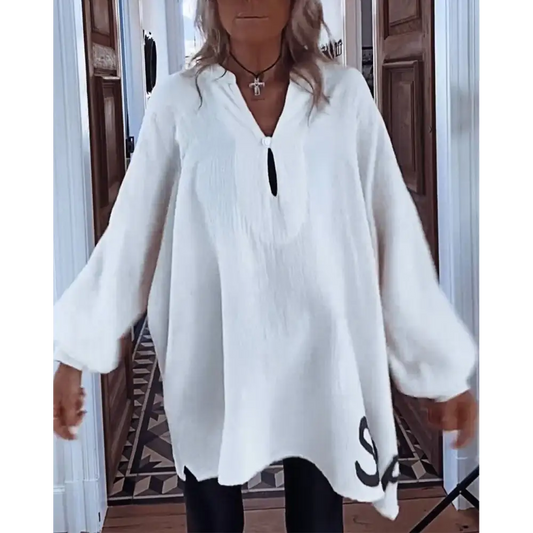 Blusa feminino de algodão e linho com decote em V e letras