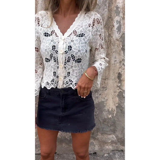 Blusa vazada com decote em V
