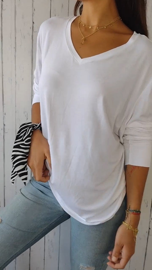 Camisa de Algodão e Linho com Gola Redonda e Mangas 3/4