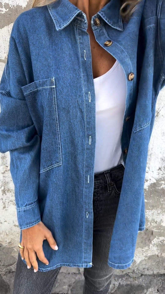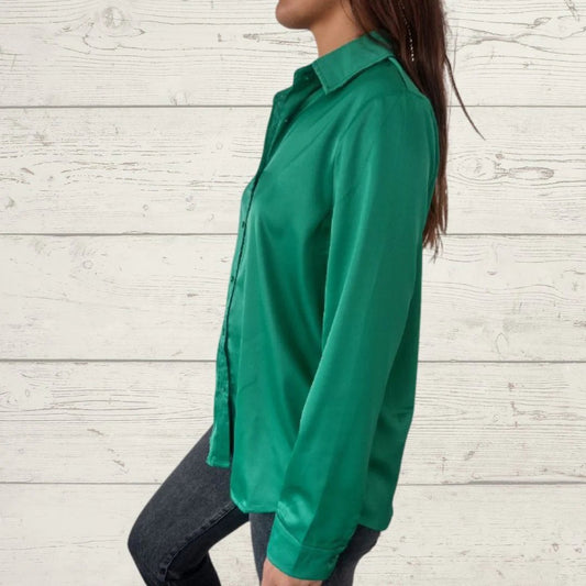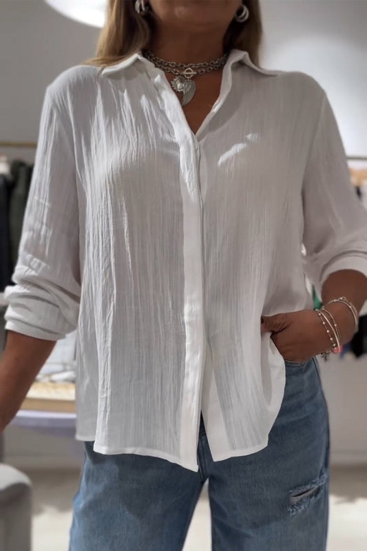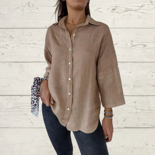 Camisa com Lapela e Mangas 3/4 de Algodão e Linho