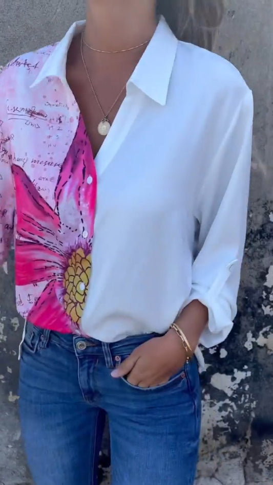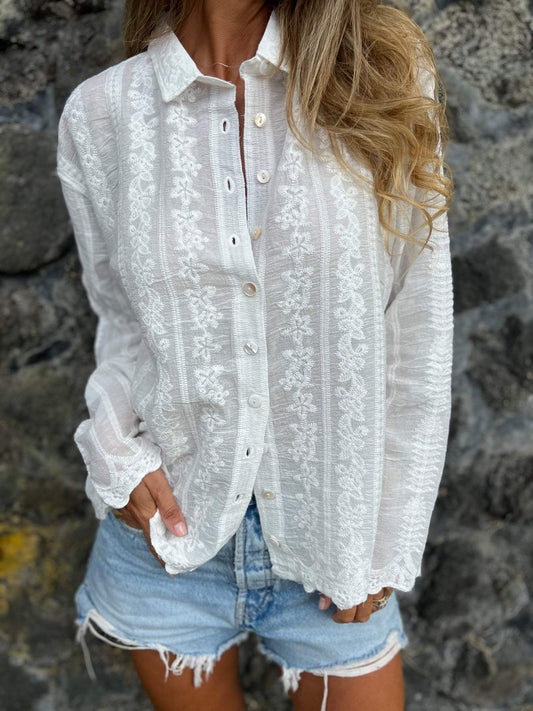 Camisa com Mangas 3/4 e Patchwork Vazado