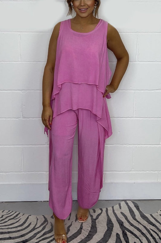 Conjunto de Top Suelto sin Mangas y Pantalones Casuales