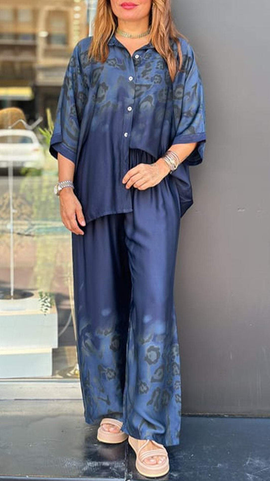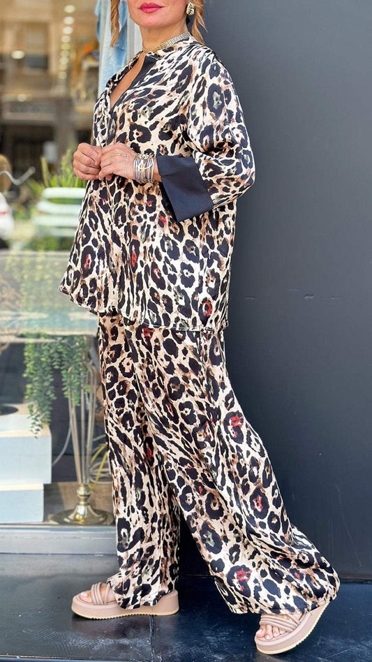 Conjunto Femenino Casual con Solapa y Estampado de Leopardo Gradiente