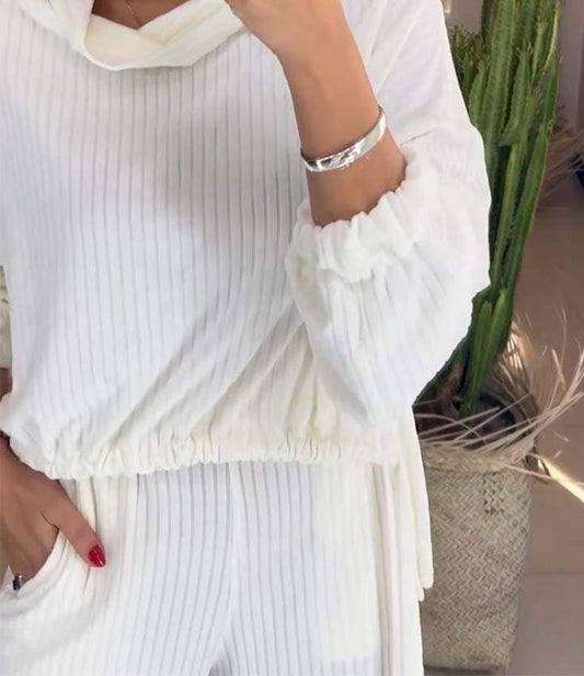 Conjunto Femenino Casual de Manga Larga de Color Sólido