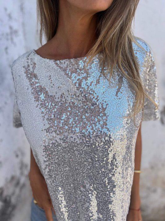 Camiseta con Lentejuelas y Diseño Abierto en la Espalda