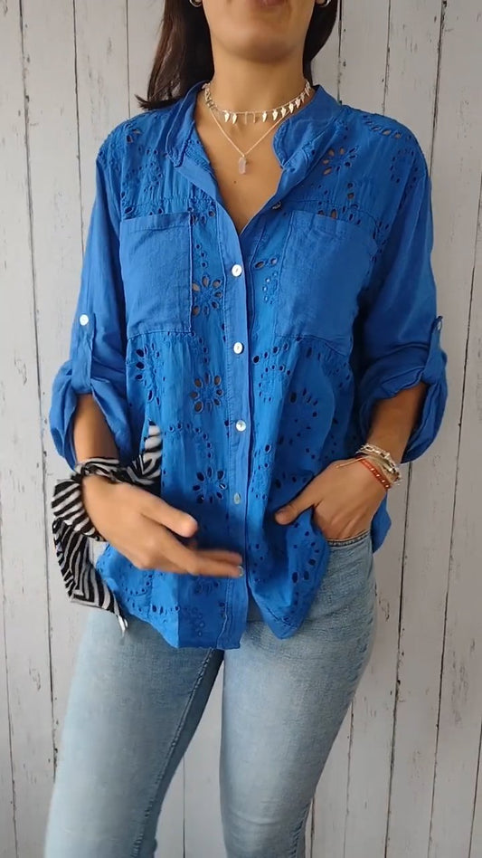 Camisa de algodón y lino vazada