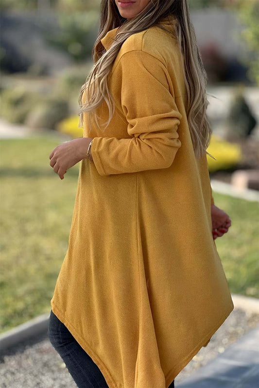 Camiseta femenina casual de cuello alto y mangas largas con dobladillo irregular