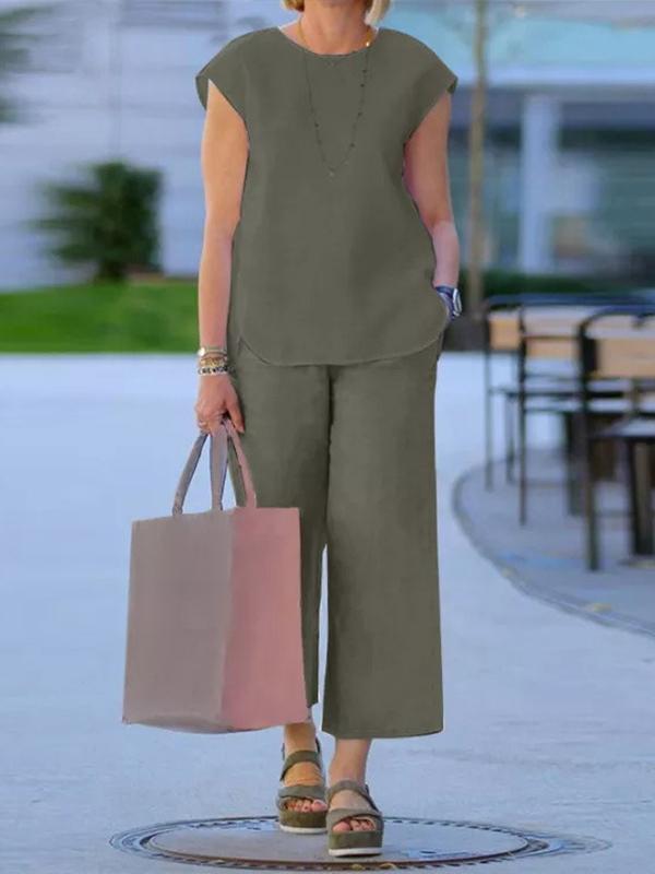 Conjunto Básico con Chaleco de Cuello Redondo y Pantalones de Pierna Ancha