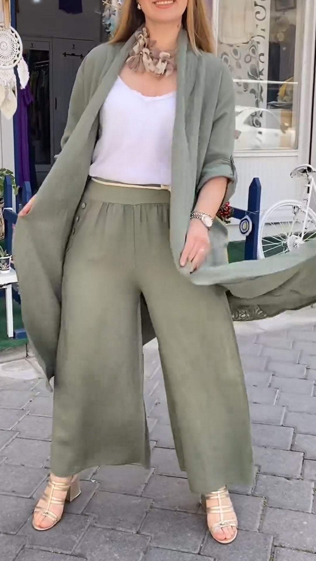 Agrega el Conjunto de Dos Piezas con Cardigan Largo con Costura Perforada a tu guardarropa y disfruta de la combinación perfecta de elegancia, comodidad y versatilidad. Ya sea para un día de trabajo, una reunión casual o una ocasión especial, este conjunto es la elección ideal para quienes desean estar siempre bien vestidas y seguras.