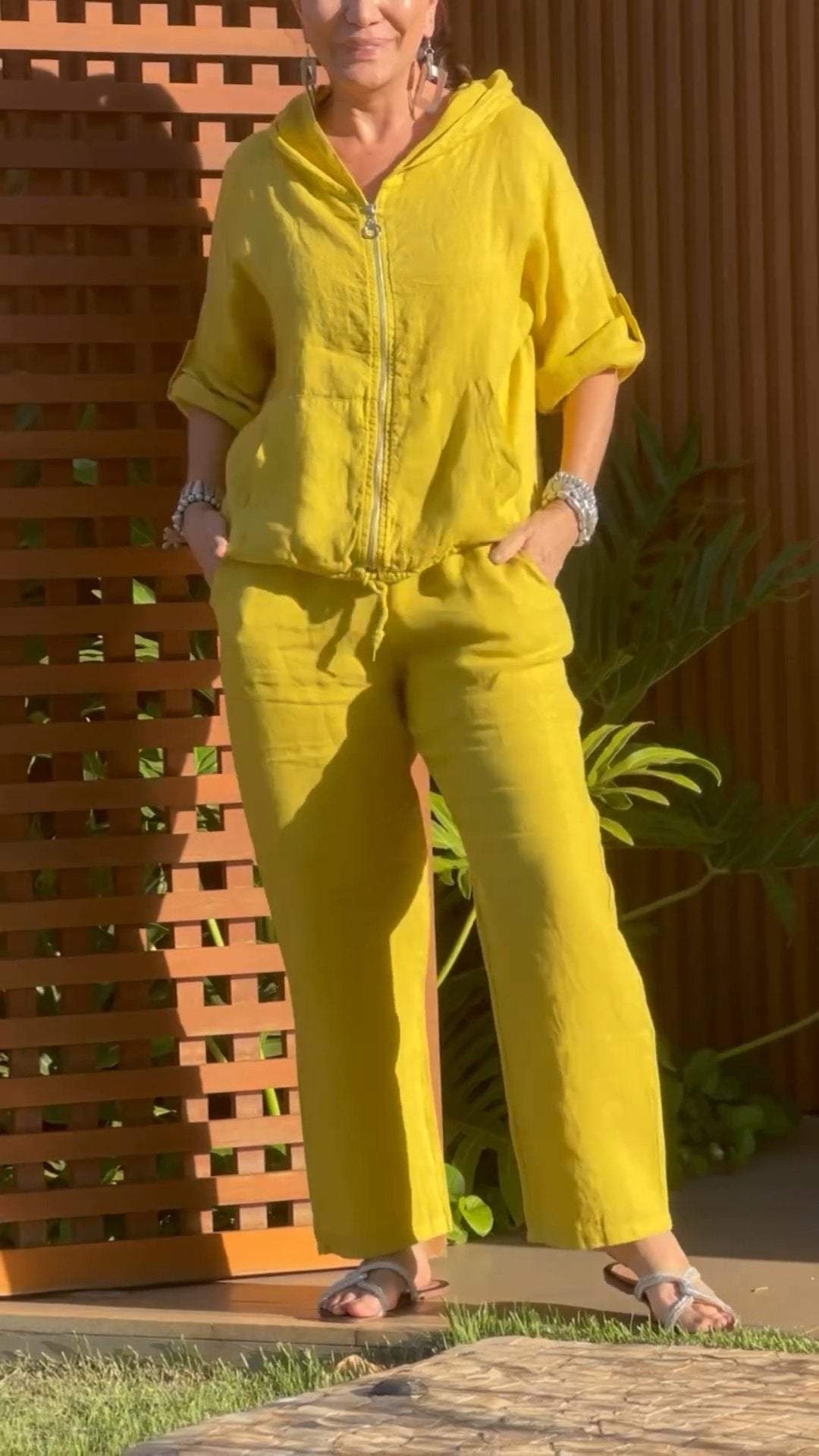 Fabricado con una mezcla premium de algodón y lino, este conjunto proporciona un toque suave y fresco en la piel, garantizando máximo confort incluso en los días más calurosos. El modelado suelto y los acabados bien estructurados hacen de esta prenda indispensable para cualquier guardarropa.