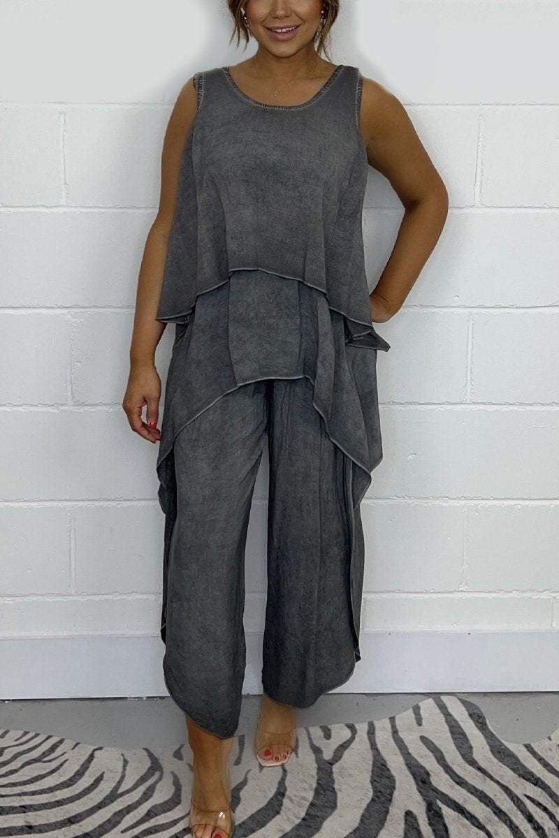 Comodidad y Estilo: Conjunto de Top Suelto sin Mangas y Pantalones Casual