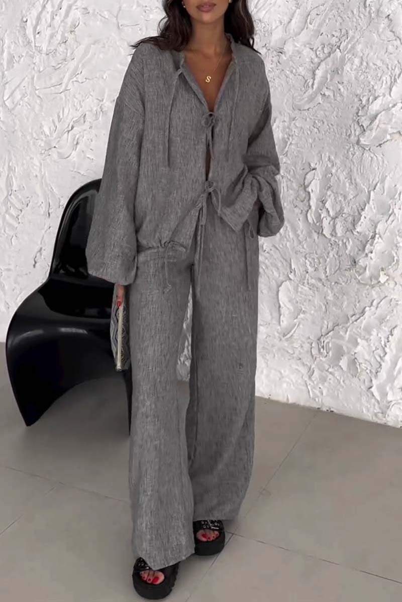 Estilo Minimalista: Conjunto Femenino Casual de Color Sólido con Amarre de Dos Piezas