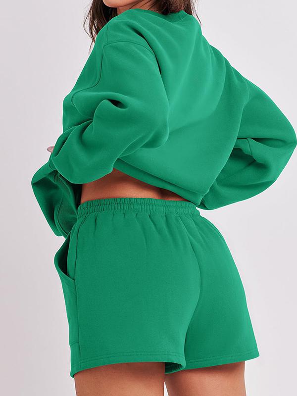 Conjunto Femenino Casual de Top con Manga Larga y Shorts con Cuello Redondo