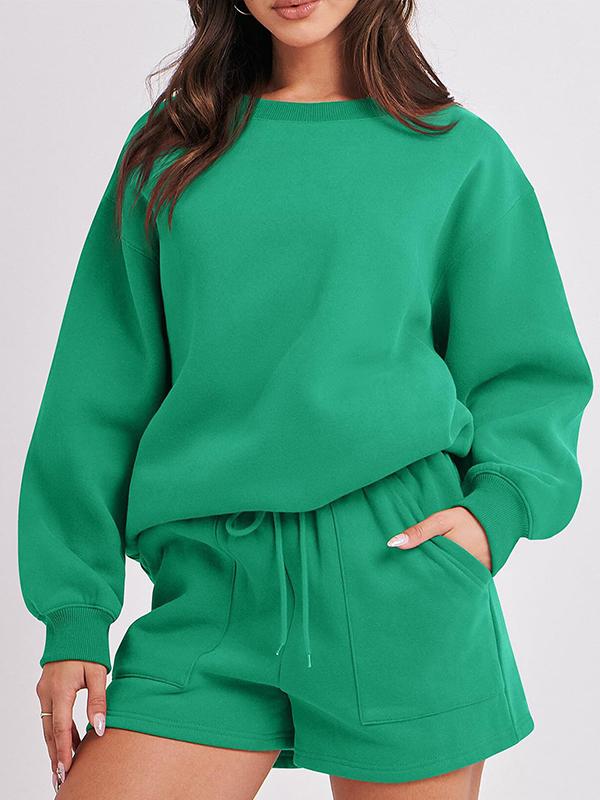 Estilo Descontraído: Conjunto Femenino Casual de Top con Manga Larga y Shorts con Cuello Redondo