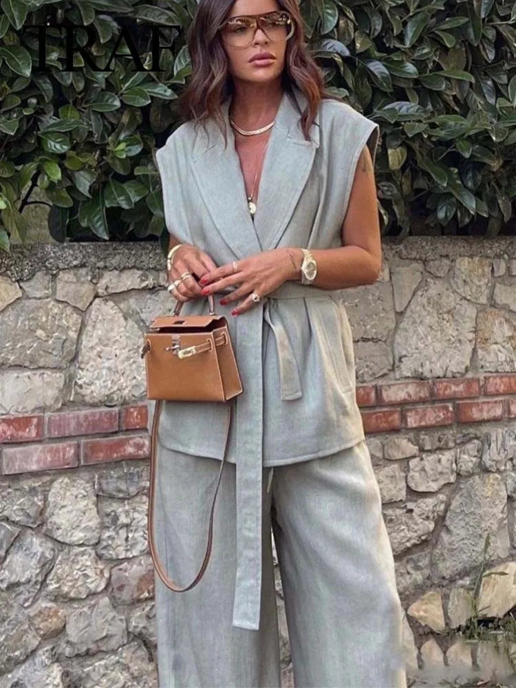 Sofisticación Moderna: Conjunto Femenino Chaleco Social Alargado Sastrería