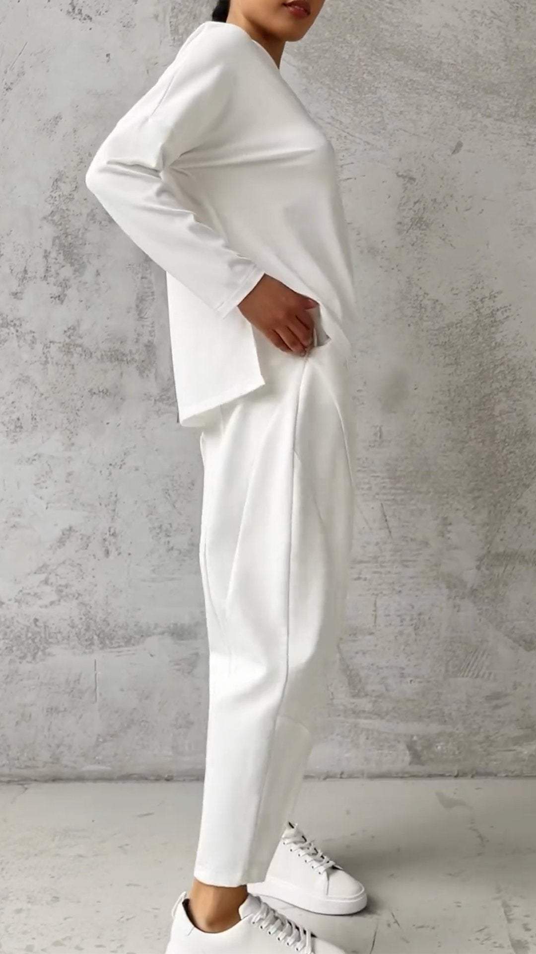 Estilo y Confort: Conjunto Femenino Confortable con Cuello Redondo y Diseño con Abertura