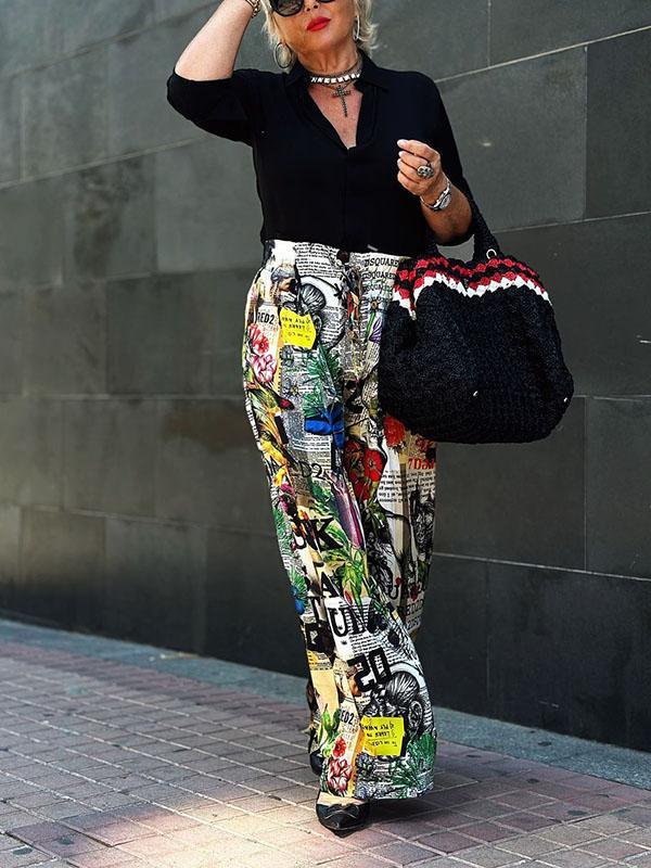 - Pantalones estampados con un patrón vibrante, añadiendo un toque moderno y estiloso.