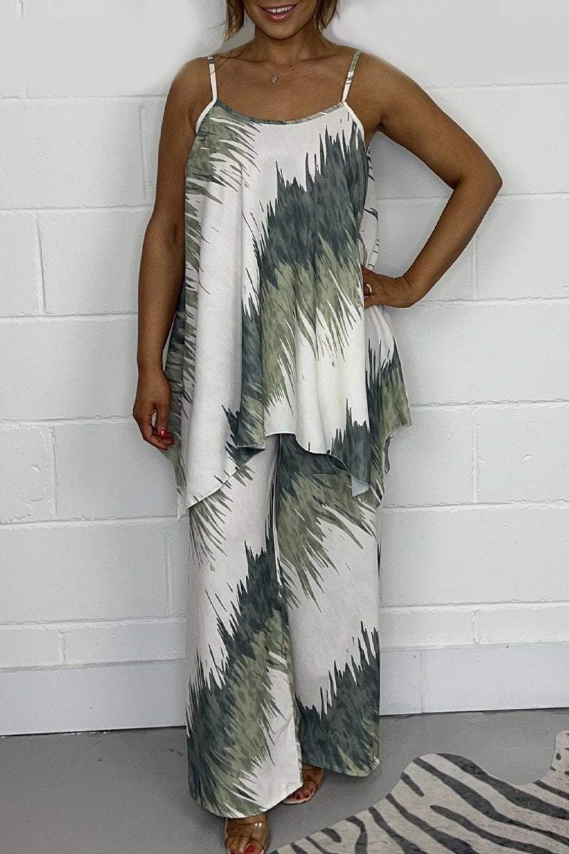 Conjunto Femenino de Top Estampado y Pantalón de Pierna Ancha