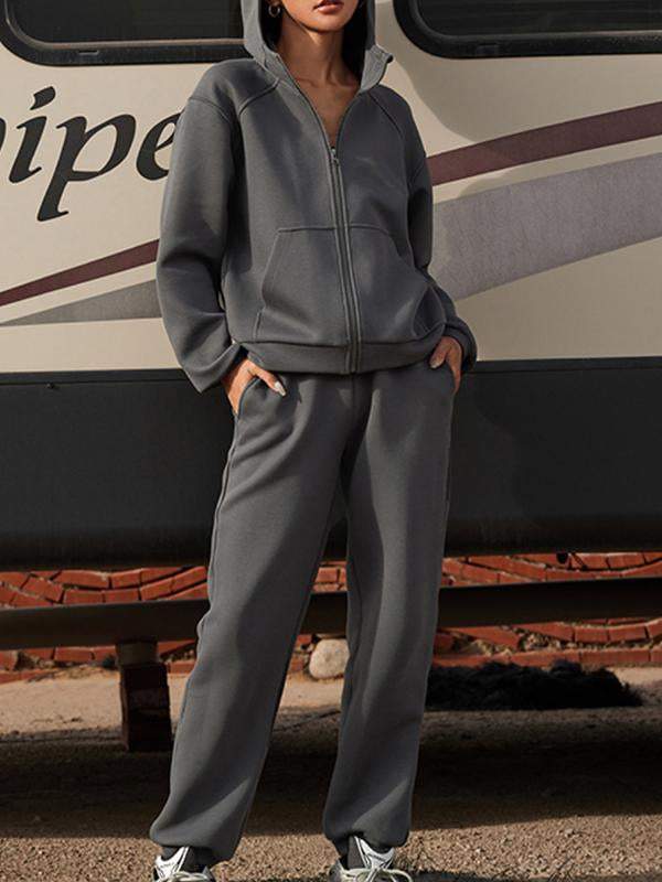 Conjunto Femenino Deportivo de Dos Piezas con Capucha y Manga Larga y Pantalón hasta el Tobillo de Color Sólido