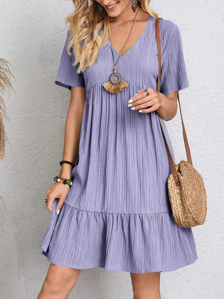 Con mangas en volantes que aportan un toque sutil de romanticismo, este vestido midi combina fluidez y comodidad. Su diseño garantiza un ajuste impecable, proporcionando un look sofisticado sin perder frescura y ligereza.