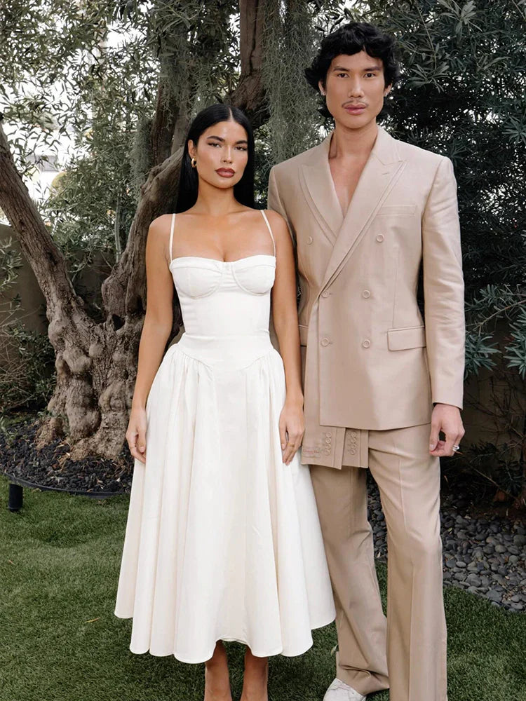 Para una celebración diurna, combina el Vestido Midi Corset con Tirantes Nia con sandalias de tacón bajo y un sombrero elegante. Para un evento nocturno, elige accesorios más audaces y sandalias de tacón alto para un look deslumbrante.